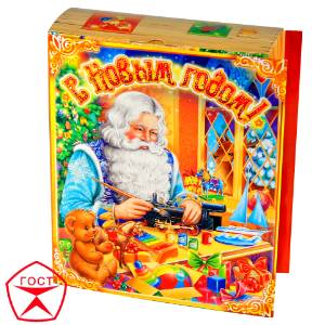 Сладкий новогодний подарок в картонной упаковке весом 1000 грамм